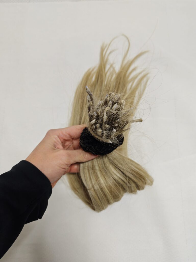 Du erhältst perfekt aufbereitete Strähnen, die sich wieder nahtlos in dein Eigenhaar einfügen und sofort eingesetzt werden können.